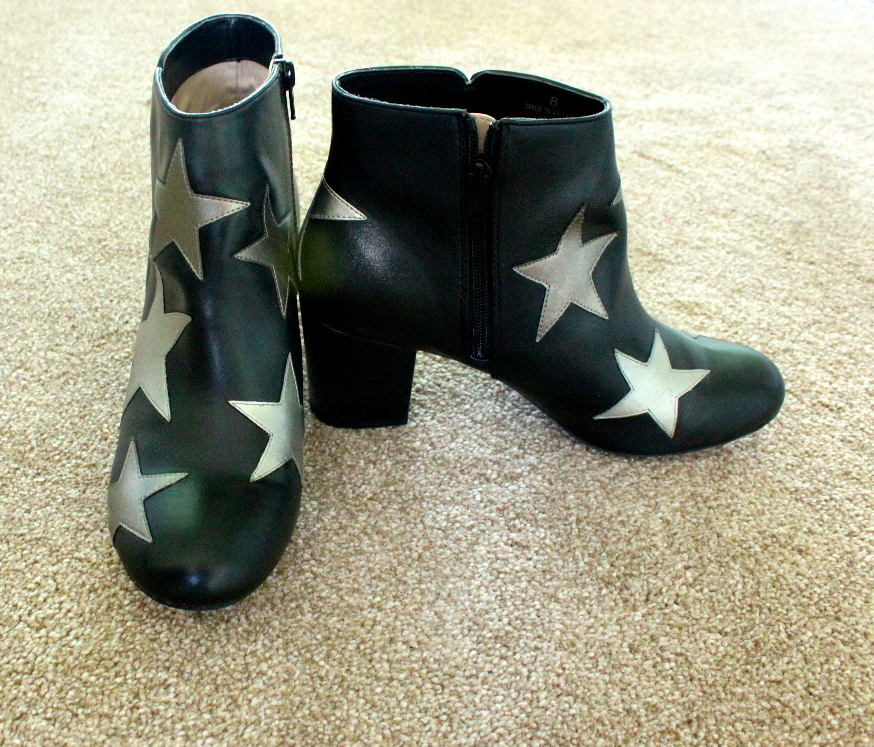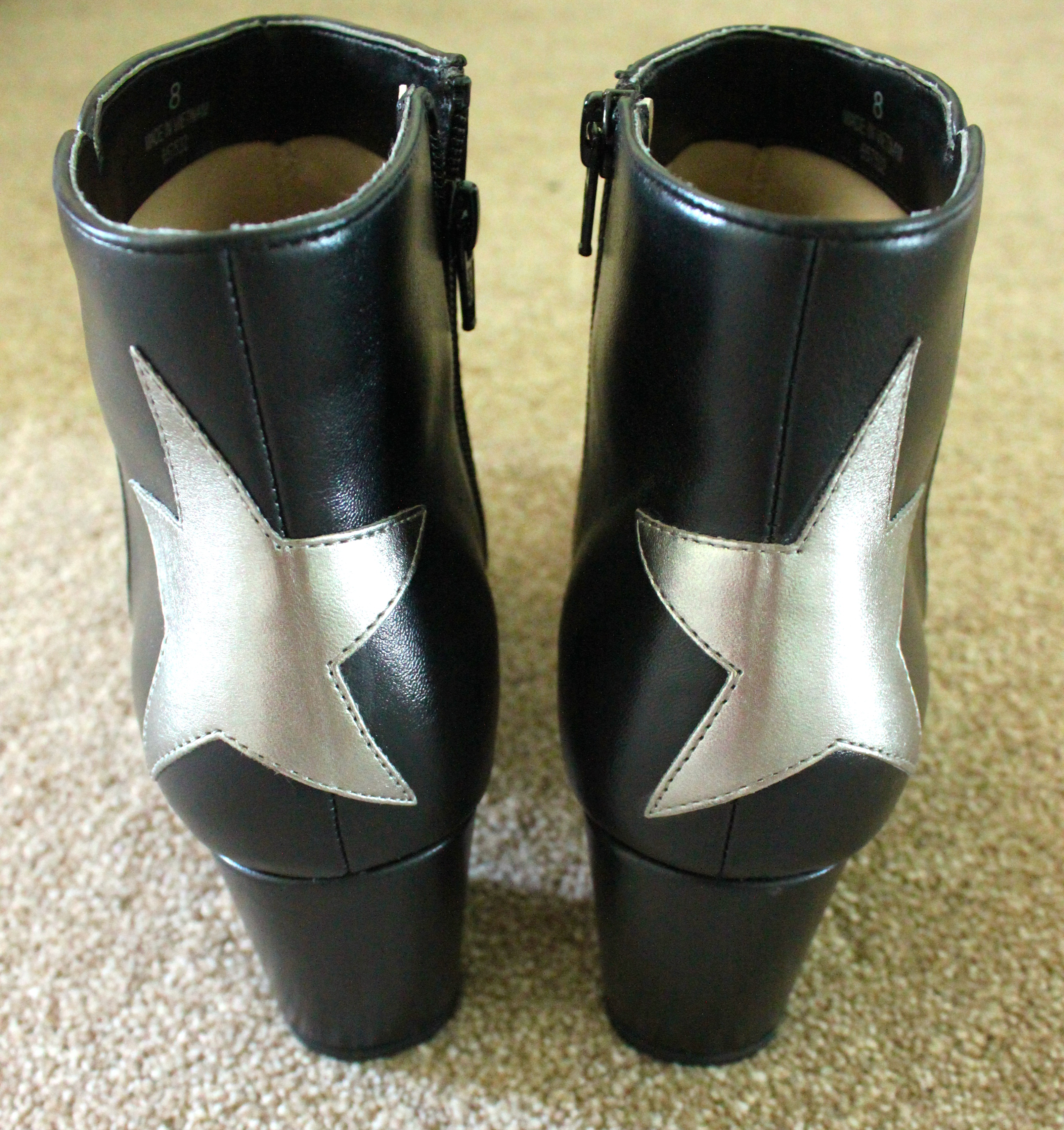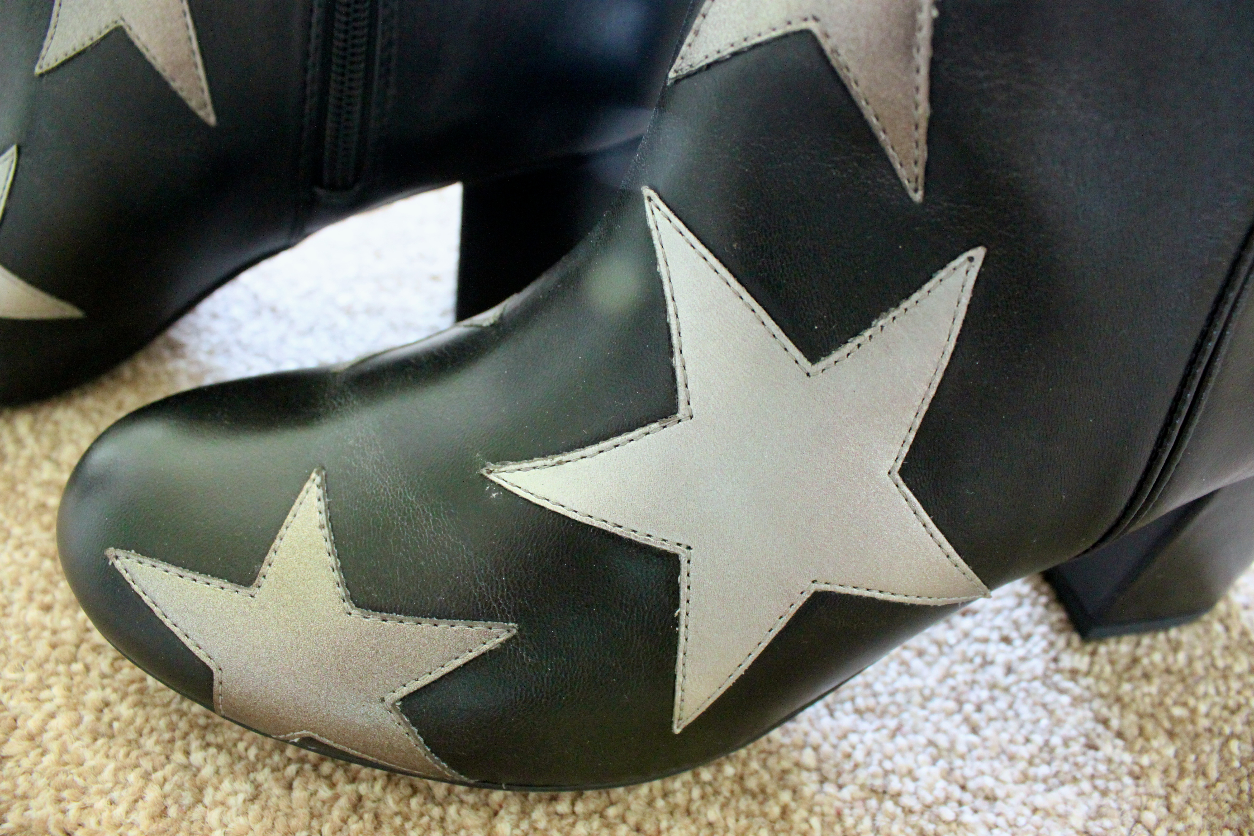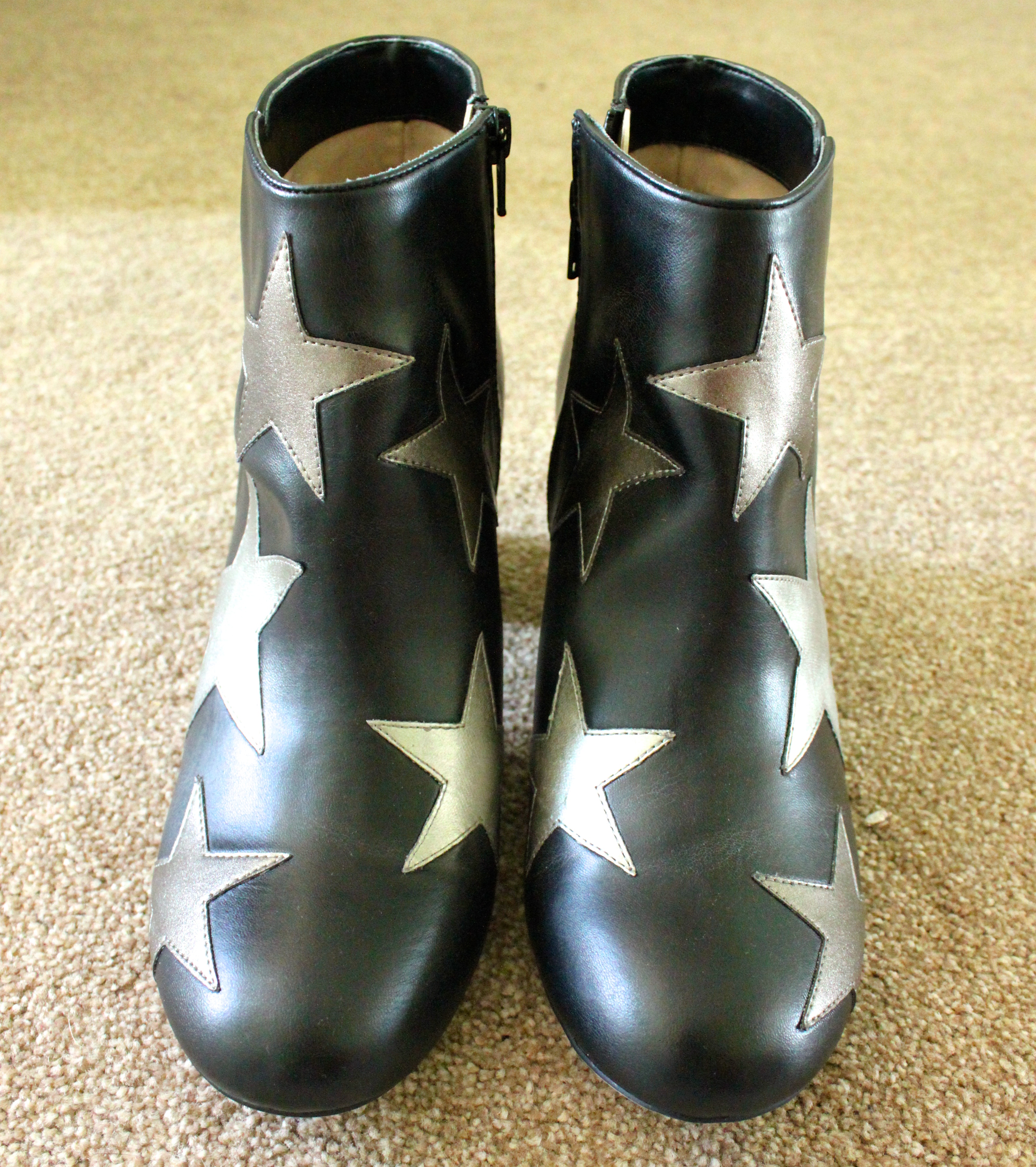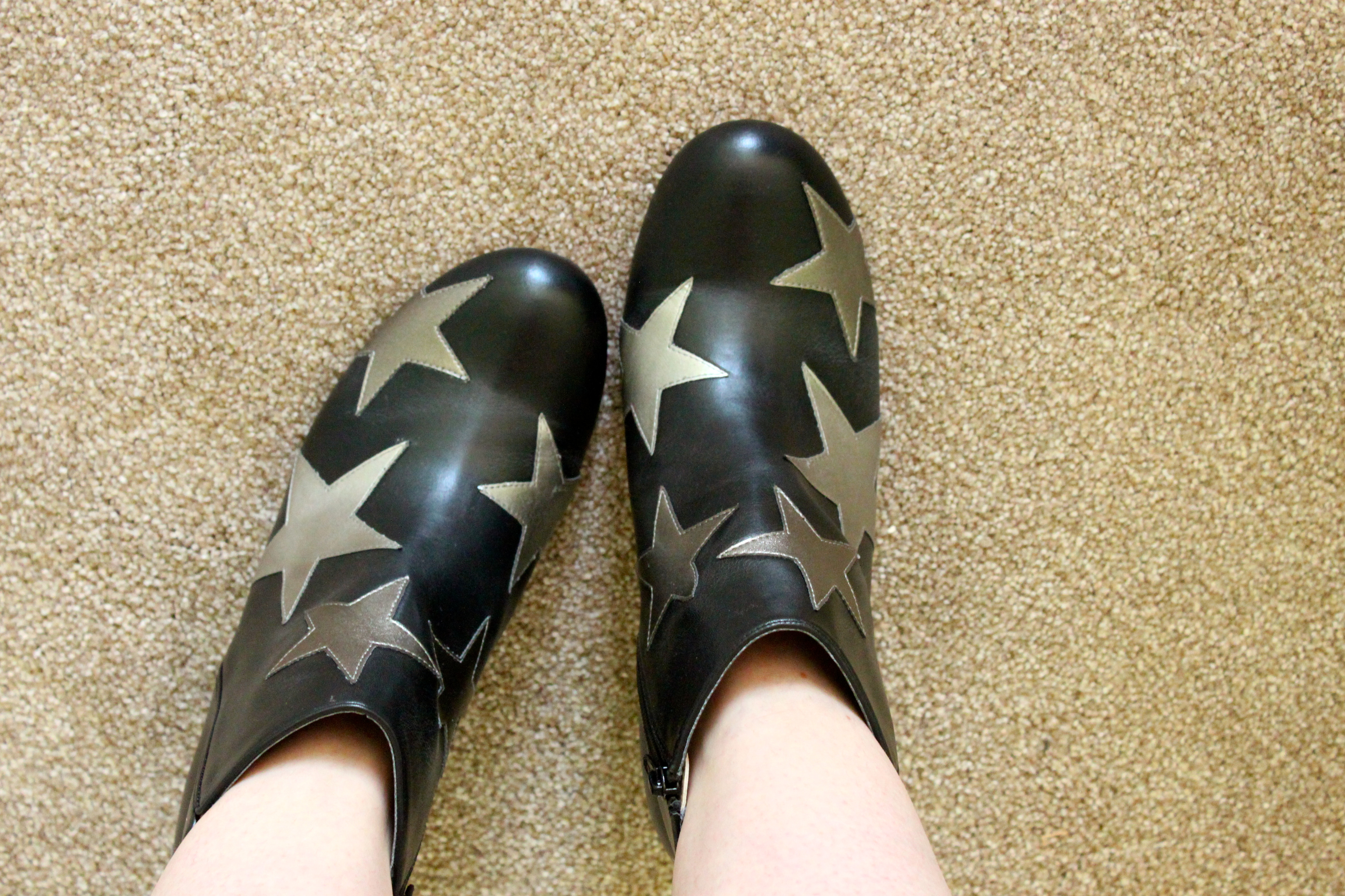 At first I wasn’t sure about the rounded toe, it felt very 90’s. And not in a good way. I also wasn’t so sure about the little heel – a bit to high to be considered a flat boot and a bit too low to be considered a proper heel. I was worried they would be a Mumsy height. But once I had them on, they were comfy, the leather felt sturdy and the stars are all a slightly different silvery-bronze colour.